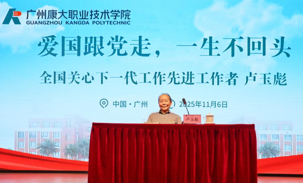 11月8日下午,广州康大职业技术学院在第一报告厅举行2025年第二期入党积极分子培训班开班。全国关心下一代工作先进工作者、广东省“最美五老”“最美老党员”卢玉彪老师受邀为全体学员讲授开班第一课。学校党委组织部负责人、二级学院党组织书记、学生党支部书记以及入党积极分子培训班全体学员共计300人参加了活动。