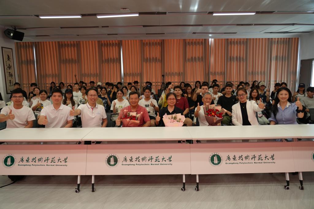 活动伊始,大屏幕上一张张泛黄的老照片徐徐展开,将师生带回学院发展的历史长河。三位老教师以“影像为引、故事为媒”,深情讲述照片背后的奋斗故事。吴丽云手持退休时收到的一本相册,每张照片后都是动人的故事;一本泛黄的班主任记录本,工整的字迹写满与学生谈话的点点滴滴;一本厚厚的爱心超市汇报手册,里面记录了无数受资助学生的肺腑之言。她动情地说:“教师不仅是知识的传递者,更要做学生品格的引路人。” 在“银龄对话”环节,三位老教师与学子围坐畅谈,围绕“信仰”“成长”“责任”等话题展开深入交流。互动环节中,学生争相提问,老教师们金句频出,现场气氛热烈,掌声此起彼伏。2023电信工程师范班学生温钰妮表示:“透过老照片,我看到了学院老一辈领导干部的奋斗历程,更读懂了什么是‘共产党员的担当’。”